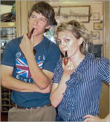 Five – Okay, now you have all the “growing up” photographs of both the bride and the groom easily organized. Next you want to get a series of fun photographs of both of them as a couple like this one of them “hamming it up” on a trip to England. The cool thing about that, at least today, is a fact that many people have lots of much more easily organized digital images that they can share with you.