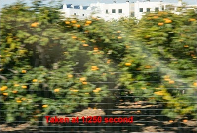 More disappointing is that when you finally download your images to view them they are filled with “motion blur”. Check out the image to the right taken at 1/250 second – it’s pretty blurry. That’s because the objects closer to the camera just out the car window are traveling by at a much greater speed pass the lens than the landscape objects in the distance.